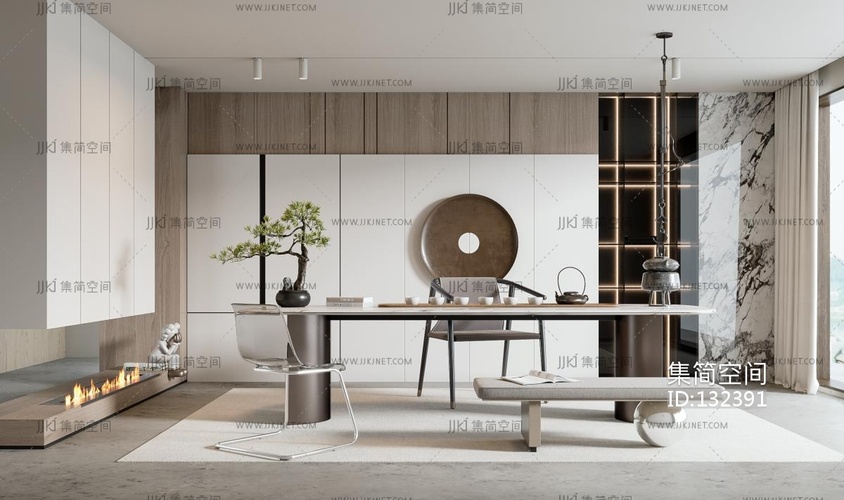 新中式茶室 3d模型下载 [模型ID:132391]
