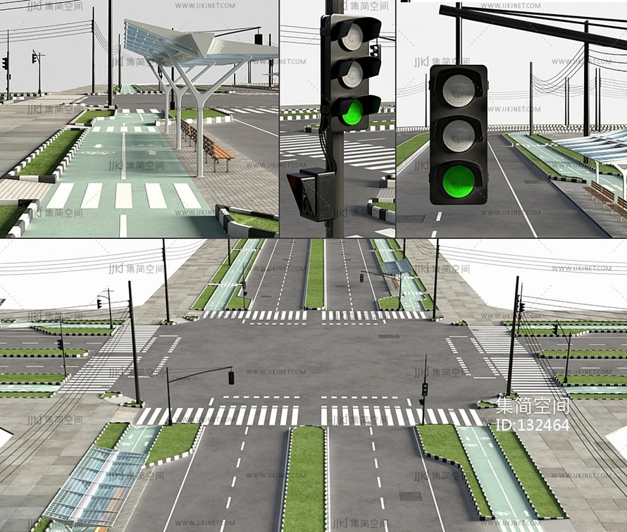 十字口交通信号灯,马路 3d模型下载 [模型ID:132464]
