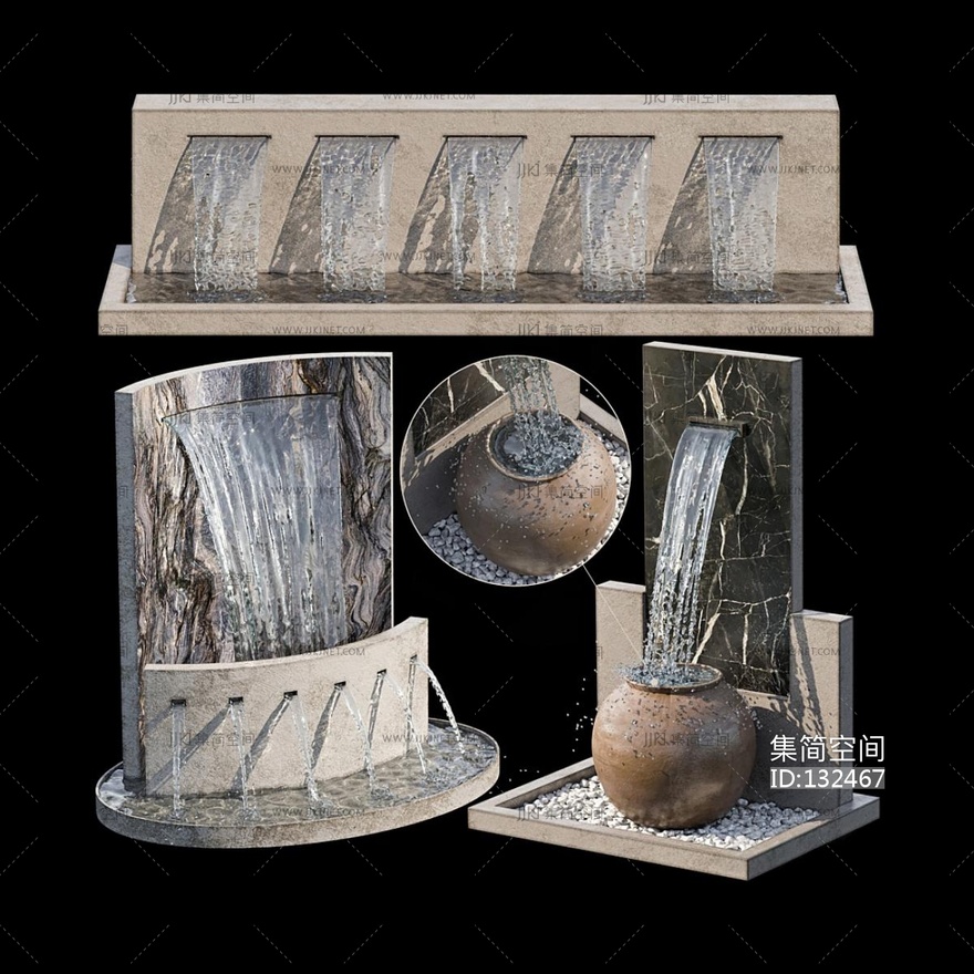 景观水景陶罐,陶土罐,喷泉流水水幕 3d模型下载 [模型ID:132467]