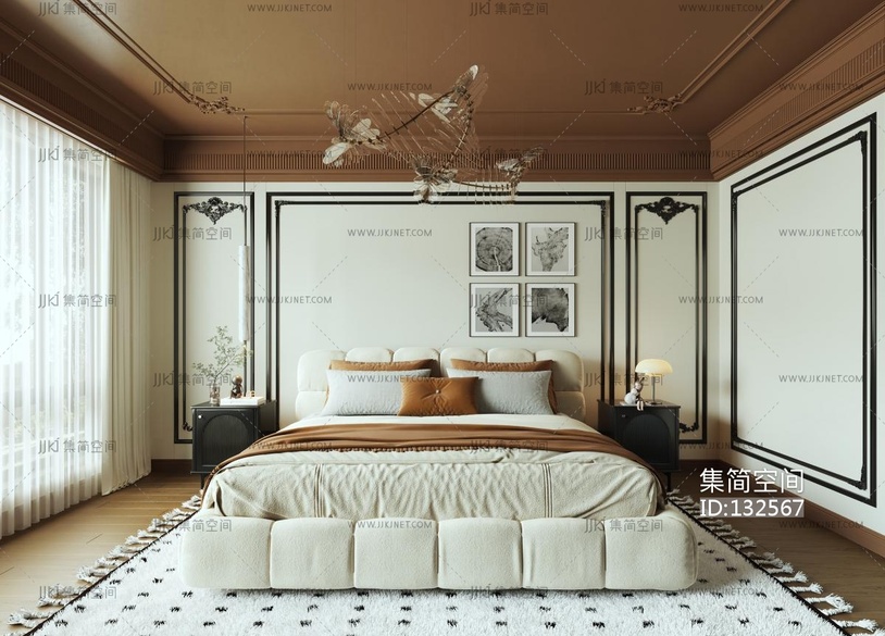6法式中古家居卧室_主卧_飘窗卧室_高级灰卧室3D模型cr3d模型下载
