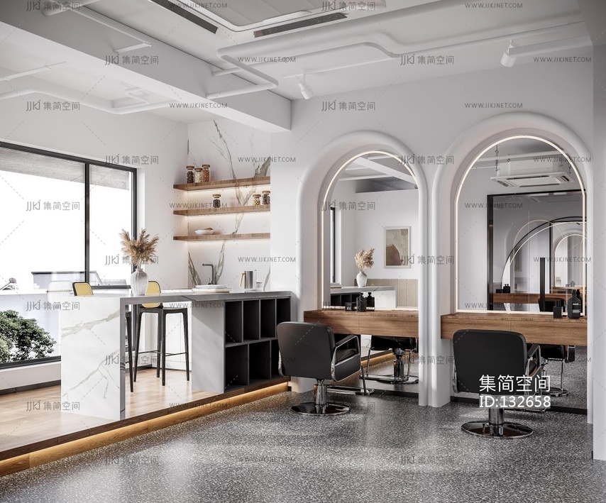 现代美发店理发店3d模型下载