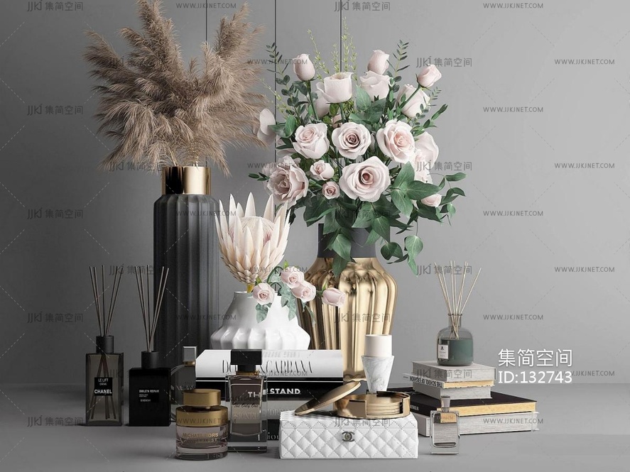 欧式花瓶现代摆件组合 3d模型下载 [模型ID:132743]