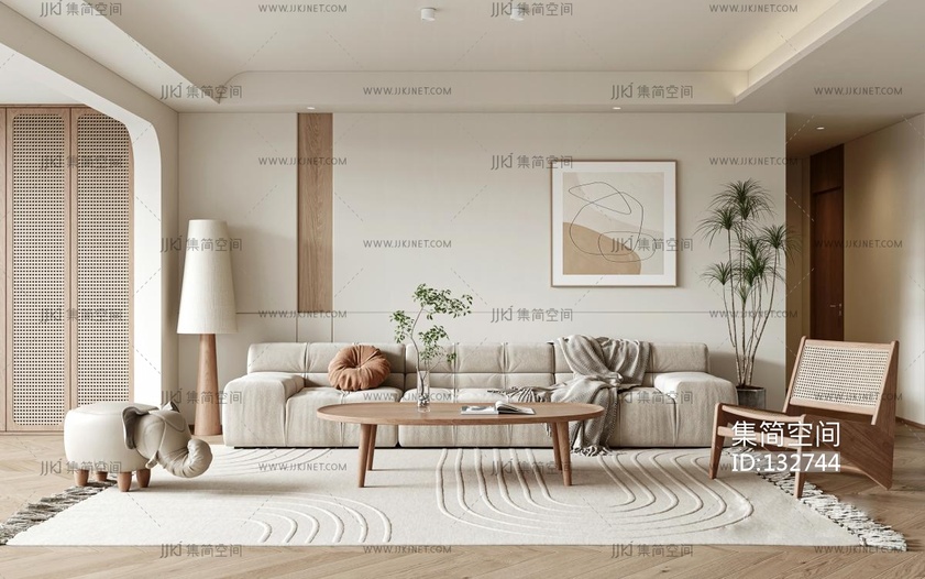 中古风客厅 沙发茶几组合 背景墙3d模型下载