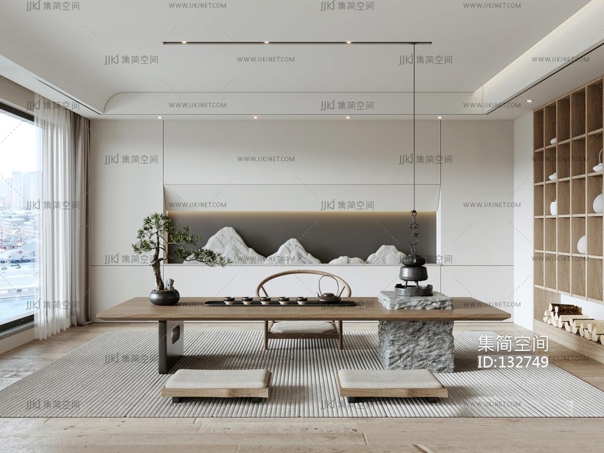 现代书房 书桌椅 壁柜 挂画 吊灯 书 盆栽 摆件3d模型下载