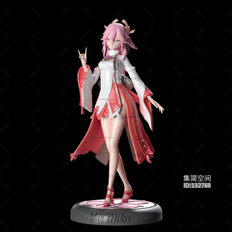 原神-八重神子卡通角色玩具手办3d模型 3d模型下载 [模型ID:132769]