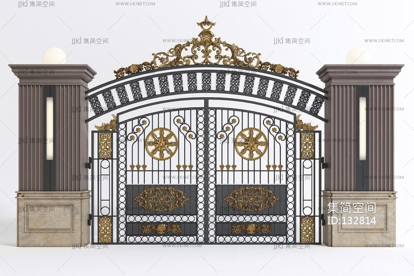 欧式雕花铁艺大门 3d模型下载 [模型ID:132814]