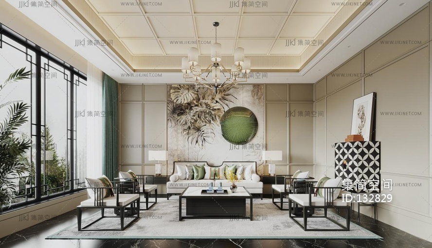 中式别墅客厅 3d模型下载 [模型ID:132829]