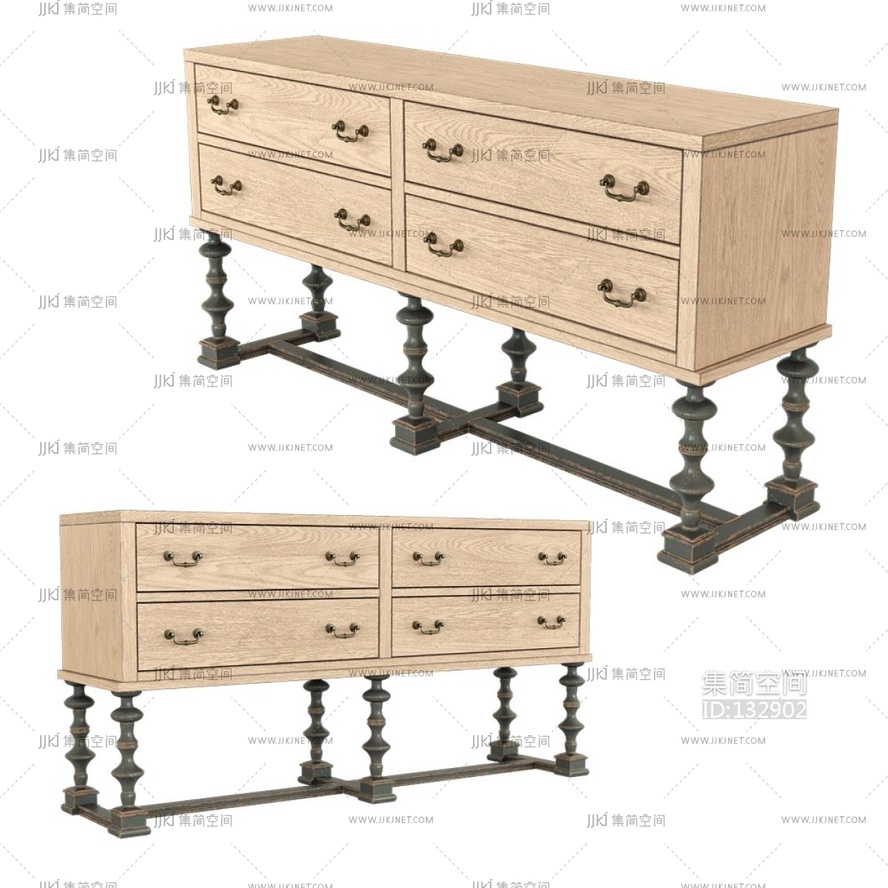 美式边柜装饰柜 3d模型下载 [模型ID:132902]