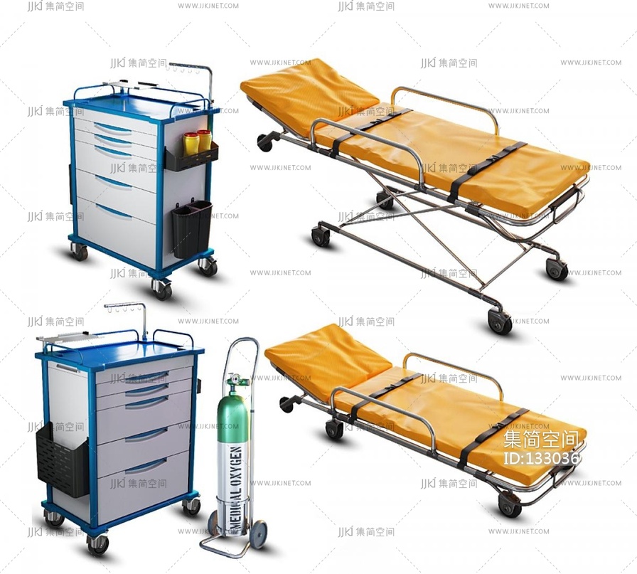 现代医院设备病床医疗设备氧气瓶 担架病床 3d模型下载 [模型ID:133036]