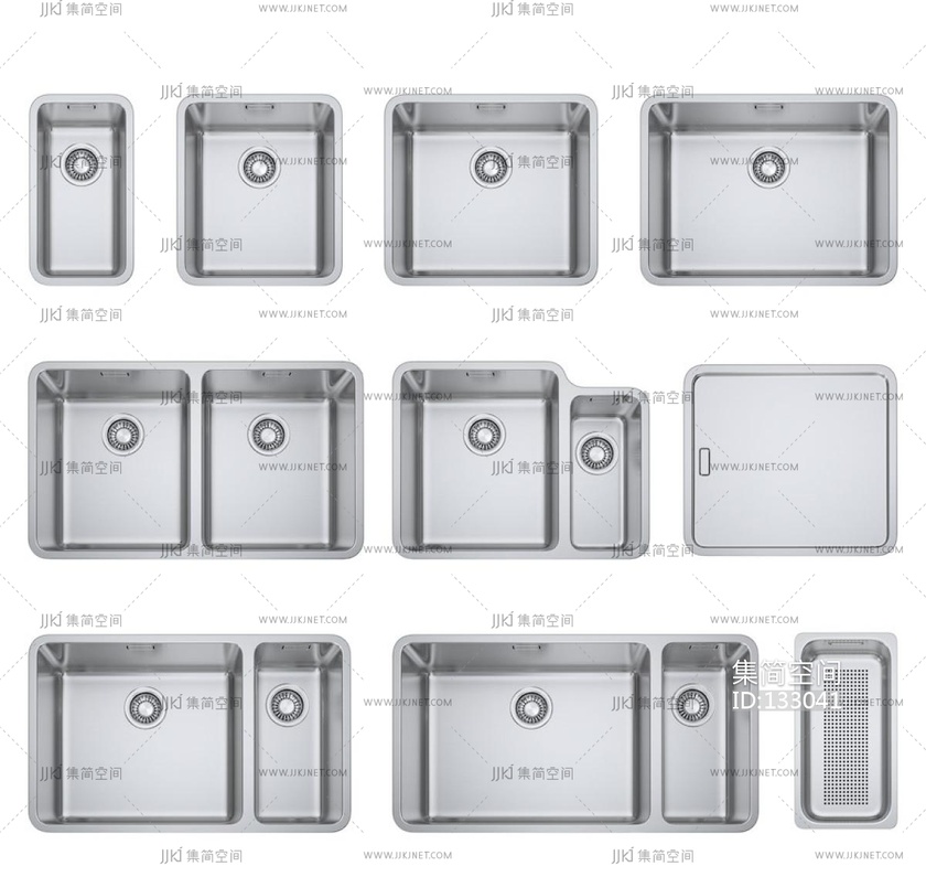 现代不锈钢水盆洗菜盆 3d模型下载 [模型ID:133041]