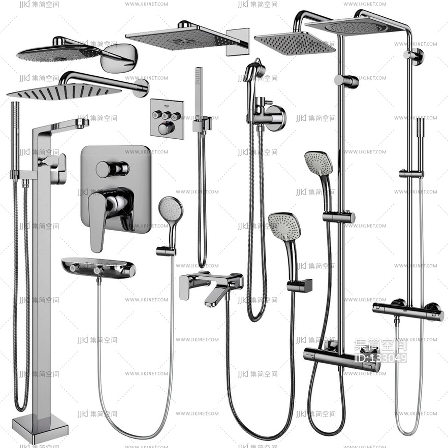 现代不锈钢花洒 3d模型下载 [模型ID:133049]