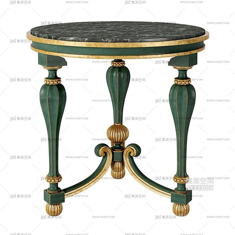 美式法式边几_圆边几3D模型v3d模型下载