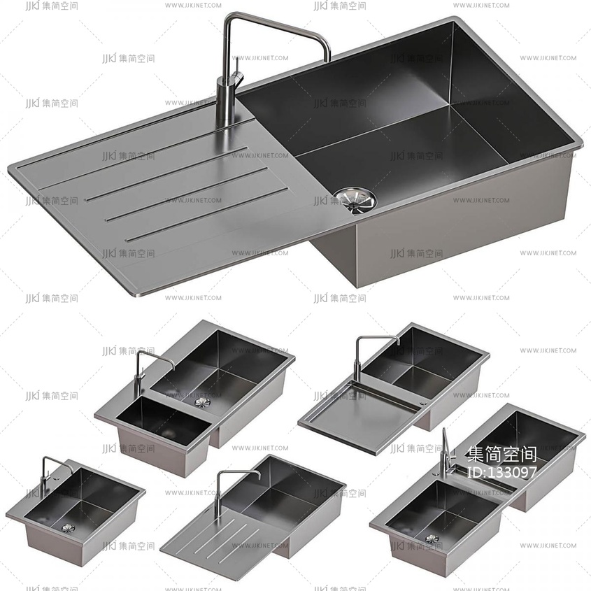 现代不锈钢洗菜盆 3d模型下载 [模型ID:133097]