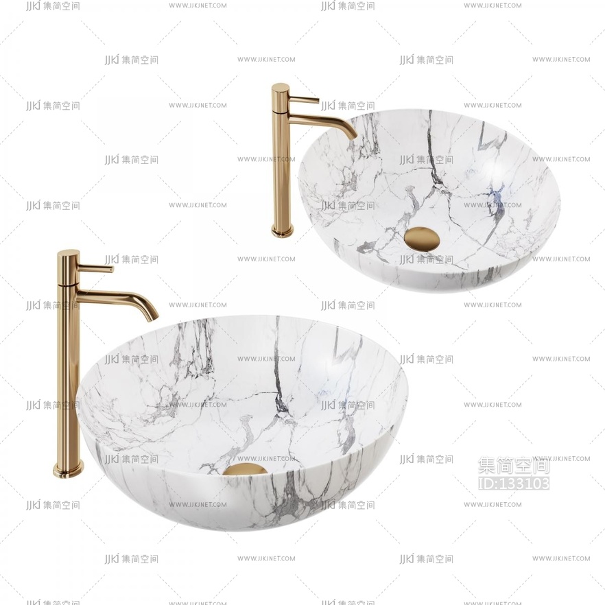 现代石材台盆洗手盆 3d模型下载 [模型ID:133103]