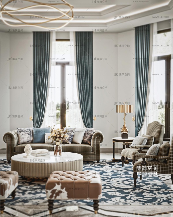简欧布艺多人沙发组合 3d模型下载 [模型ID:133104]