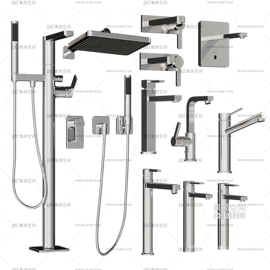不锈钢花洒水龙头 3d模型下载 [模型ID:133112]
