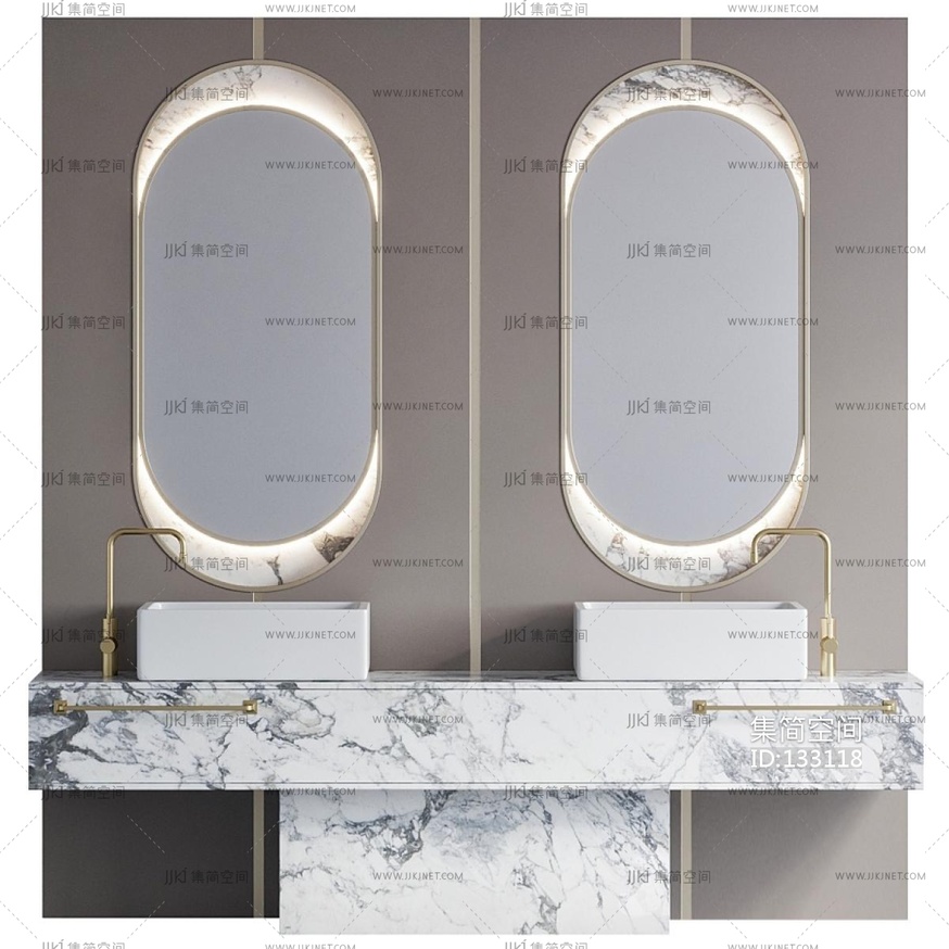 现代轻奢双盆洗手台 3d模型下载 [模型ID:133118]