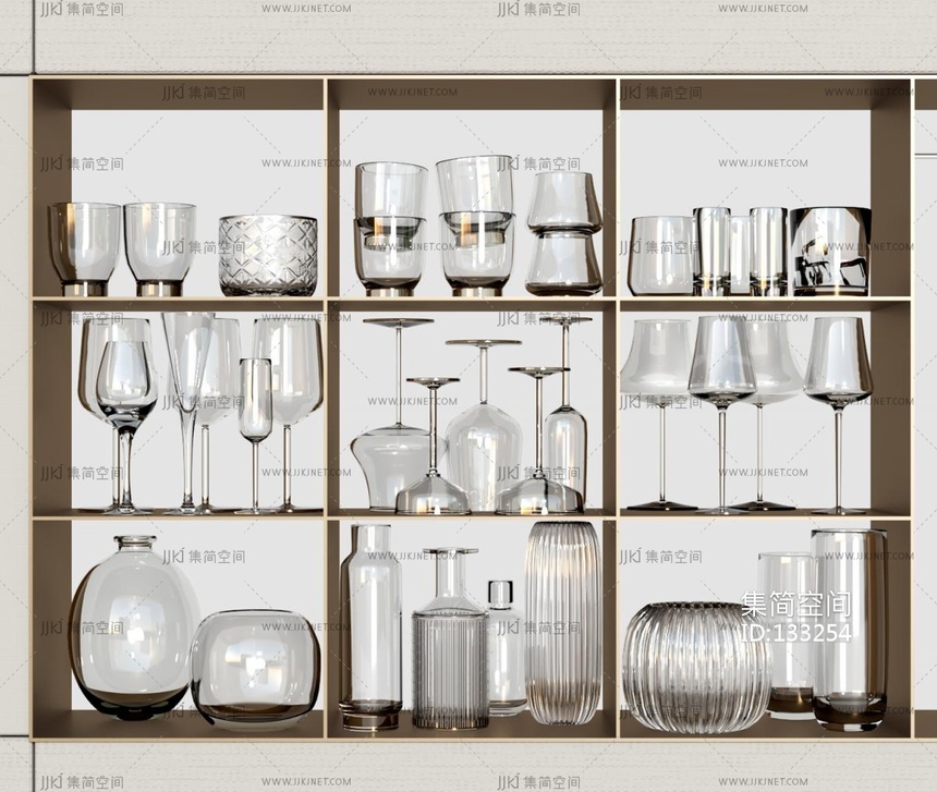 现代酒杯高脚杯, 水杯玻璃器皿 3d模型下载 [模型ID:133254]