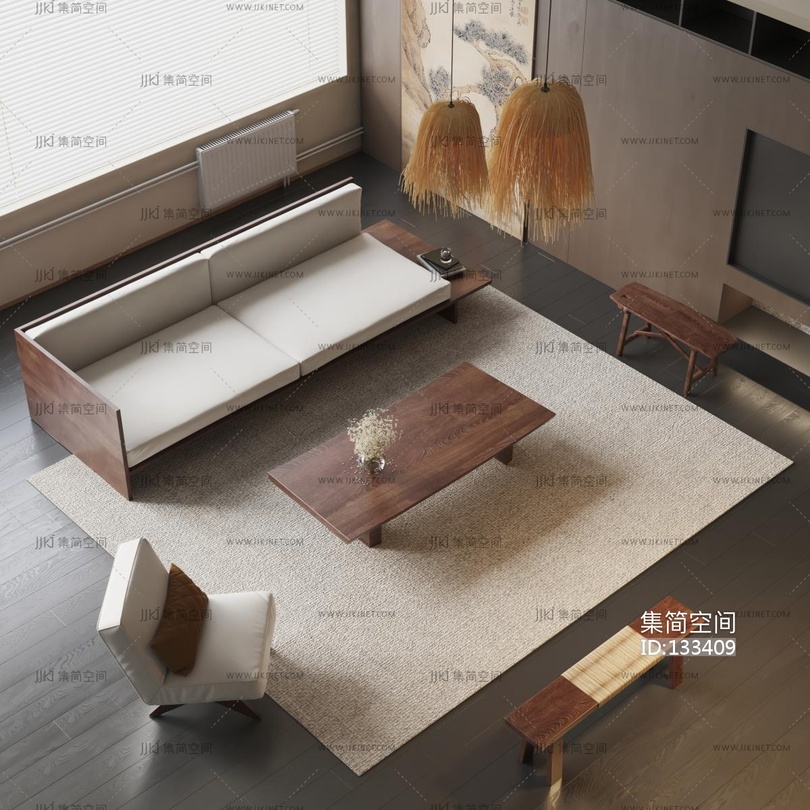 侘寂风组合沙发 3d模型下载 [模型ID:133409]