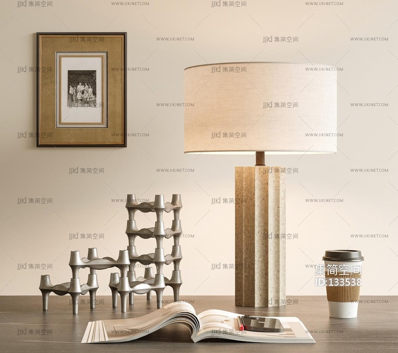 后现代台灯花瓶花卉装饰画组合3d模型下载