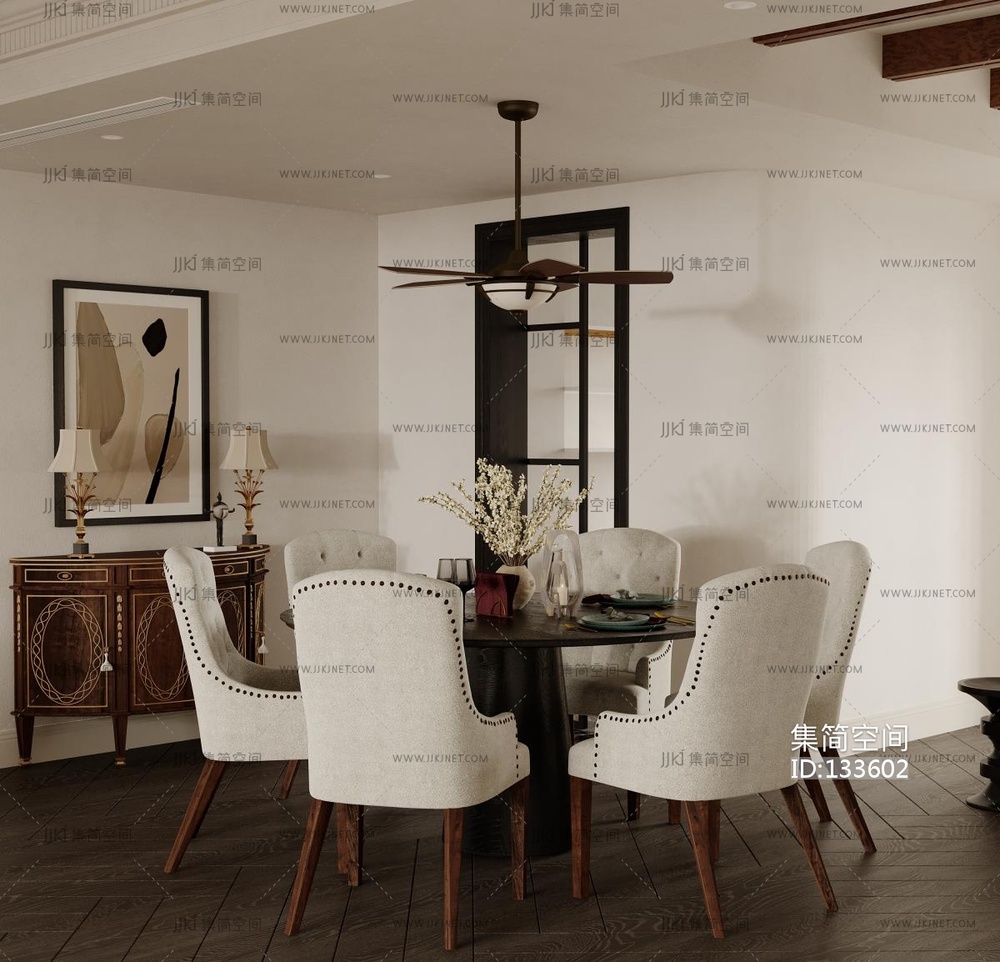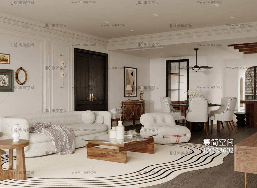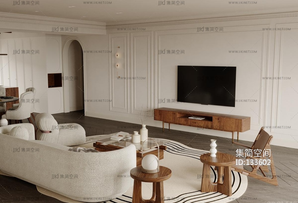 中古风客厅,美式客厅,圆形茶几,装饰画,移动电视,3d模型下载