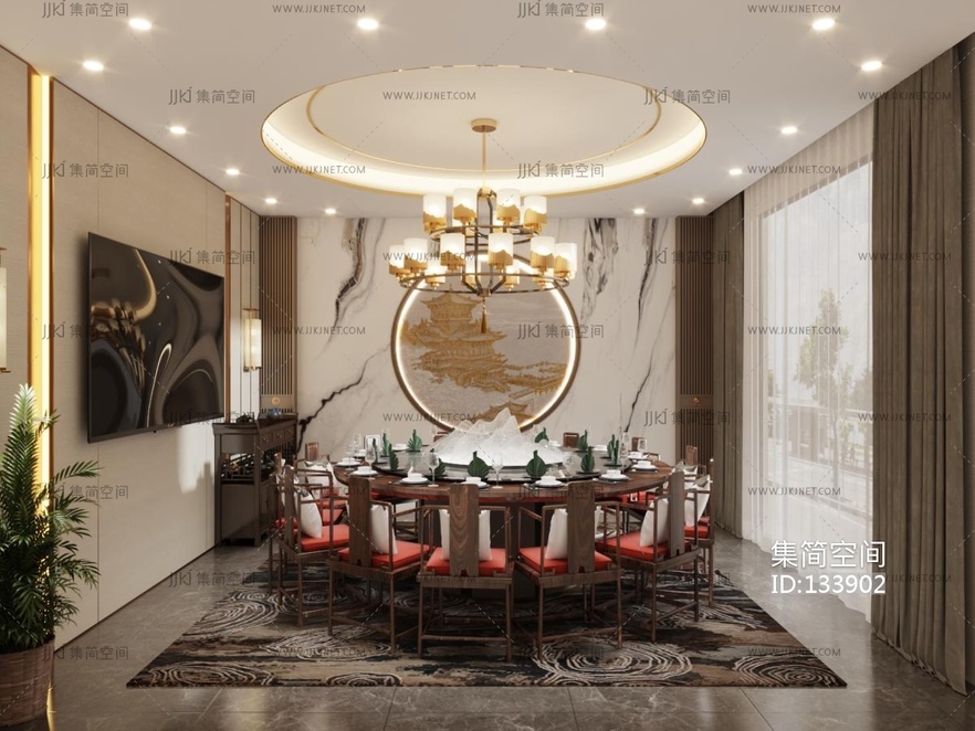新中式包间,包房 3d模型下载 [模型ID:133902]
