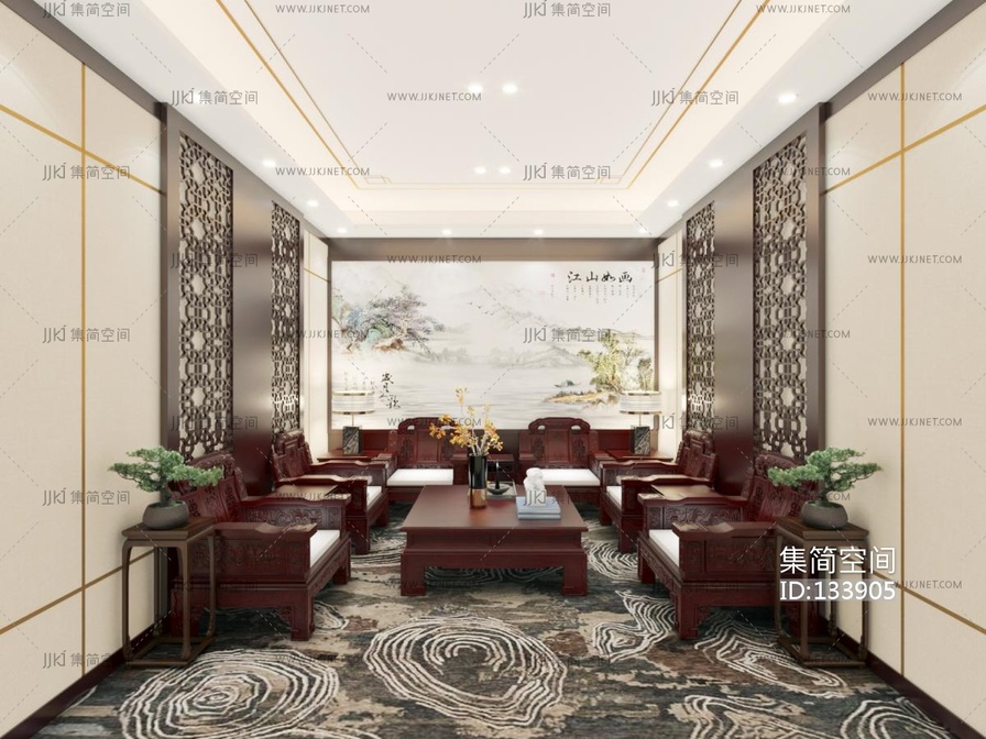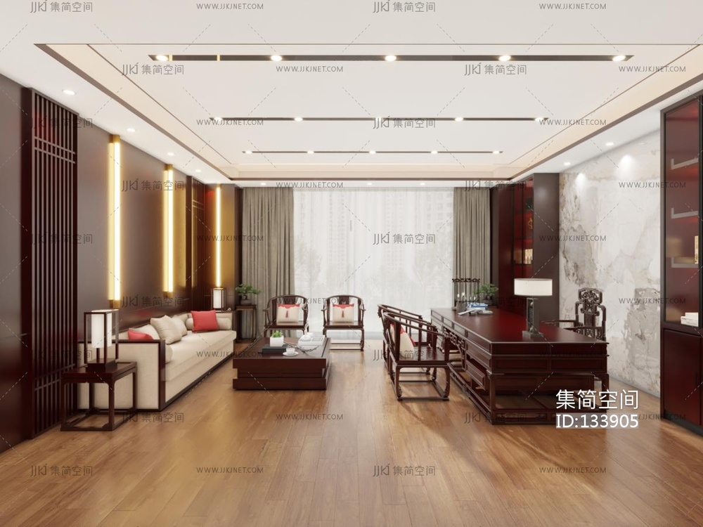 新中式接待室总经理办公室 3d模型下载 [模型ID:133905]