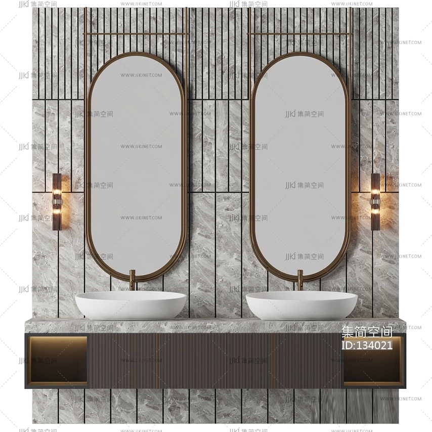 现代洗手台,镜子壁灯 3d模型下载 [模型ID:134021]