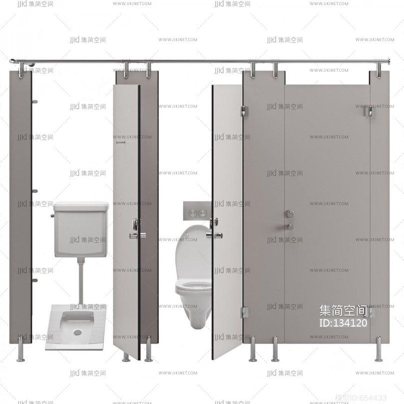 现代公共卫生间隔断蹲便器蹲坑3d模型 3d模型下载 [模型ID:134120]