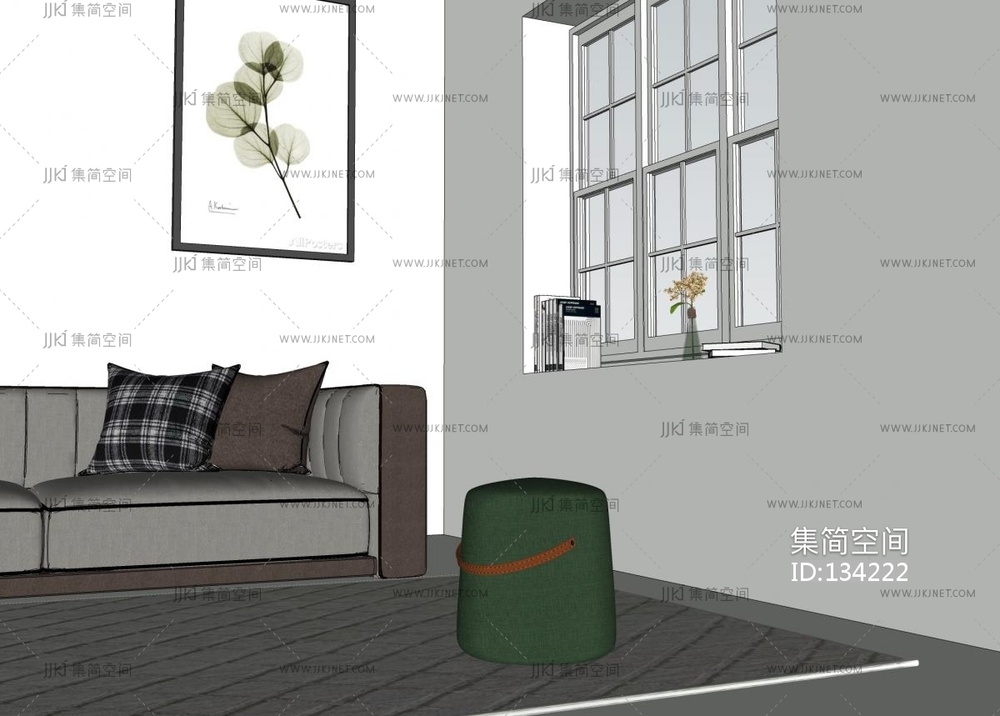 沙发椅换鞋凳 su草图模型下载