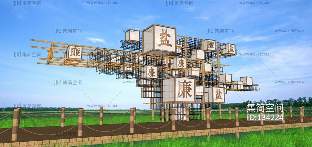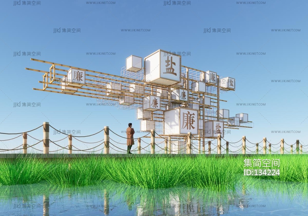 新中式雕塑小品 识牌 指示牌 美丽乡村 艺术品 艺术构筑 su草图模型下载 [模型ID:134224]
