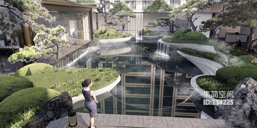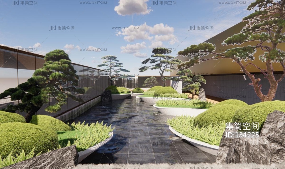 新中式庭院花园 微景观 枯山水 庭院 花园 屋顶花园 采光井 su草图模型下载 [模型ID:134225]