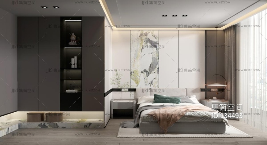 6法式中古家居卧室_主卧_飘窗卧室_高级灰卧室3D模型cr3d模型下载
