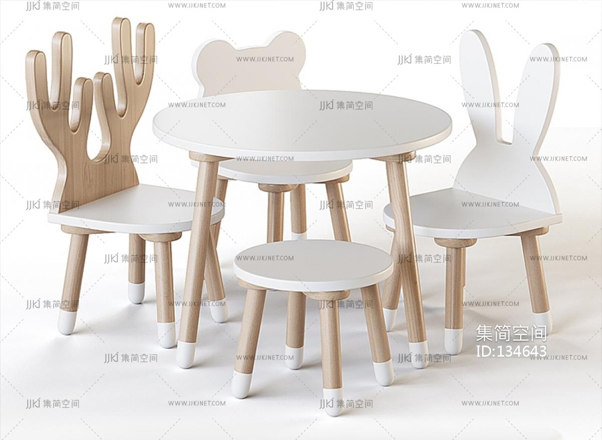 现代儿童桌椅组合3D模型 3d模型下载 [模型ID:134643]
