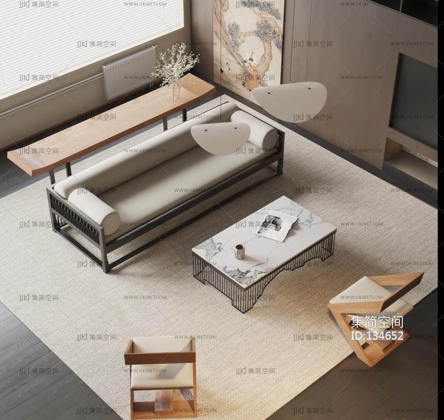 新中式沙发茶几3d模型 3d模型下载 [模型ID:134652]