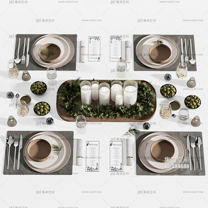 现代餐具组合 3d模型下载 [模型ID:134684]