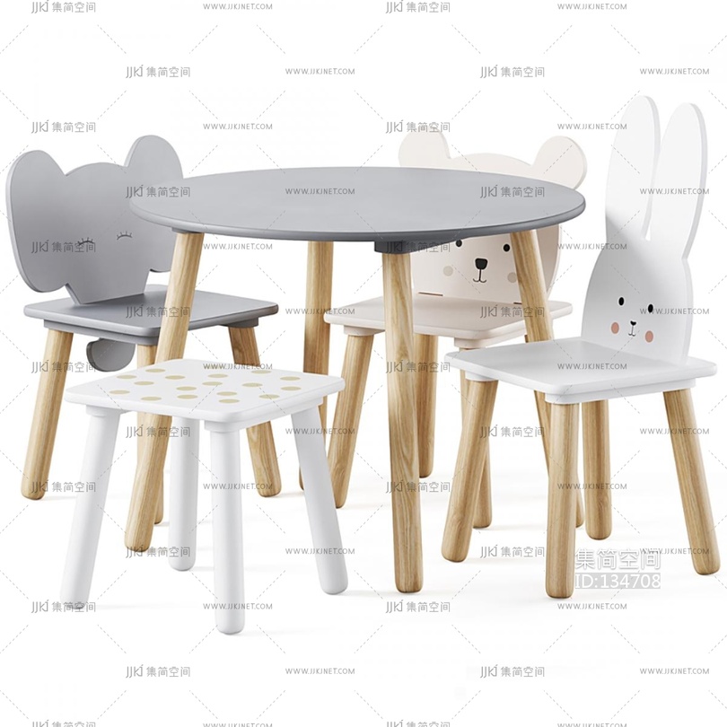 现代儿童桌椅组合 3d模型下载 [模型ID:134708]