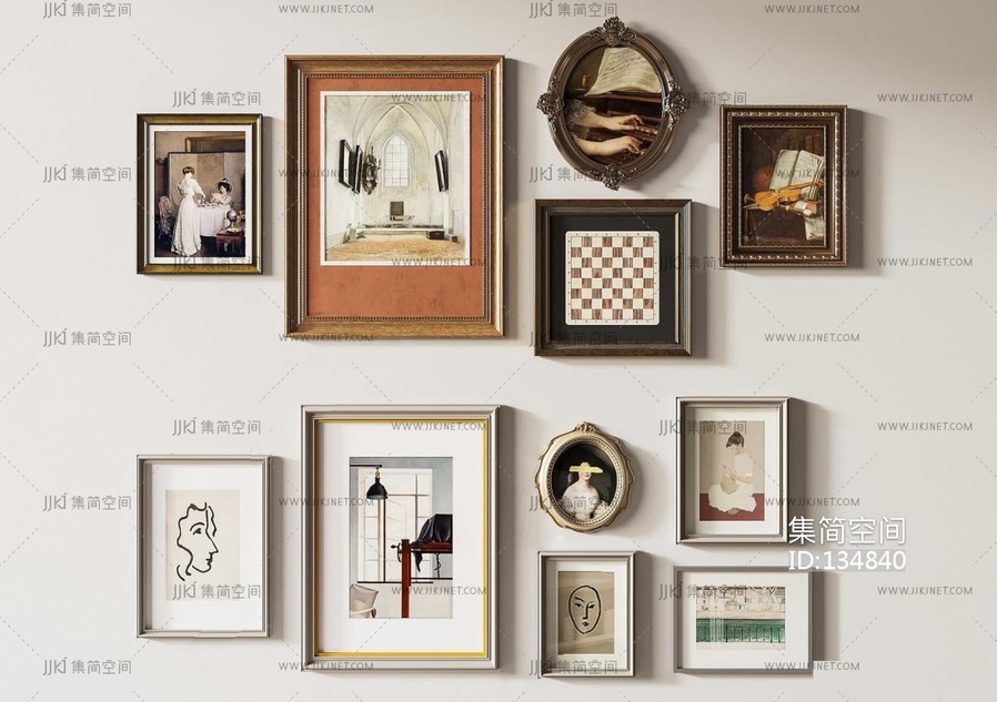 法式中古挂画_装饰画_组合3D模型3d模型下载