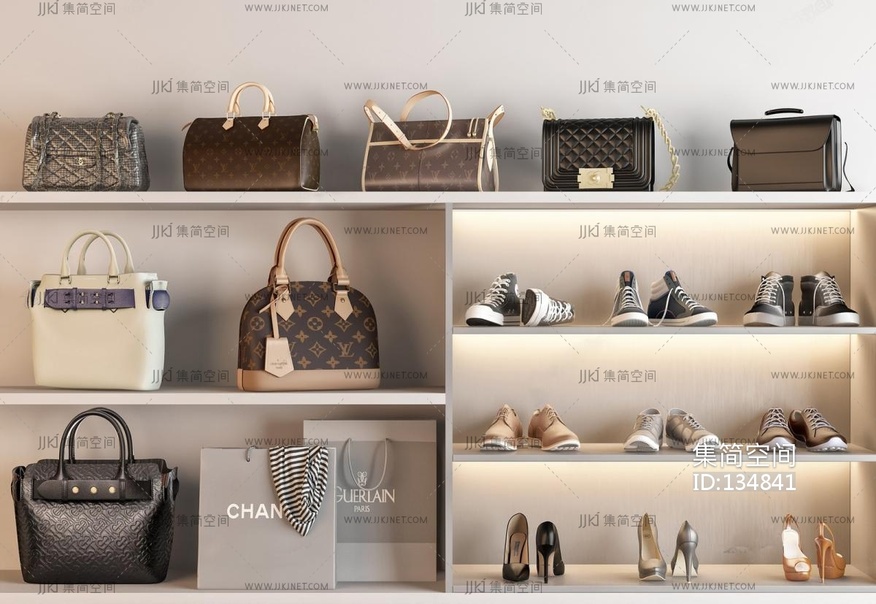 鞋,包包组合3D模型 3d模型下载 [模型ID:134841]