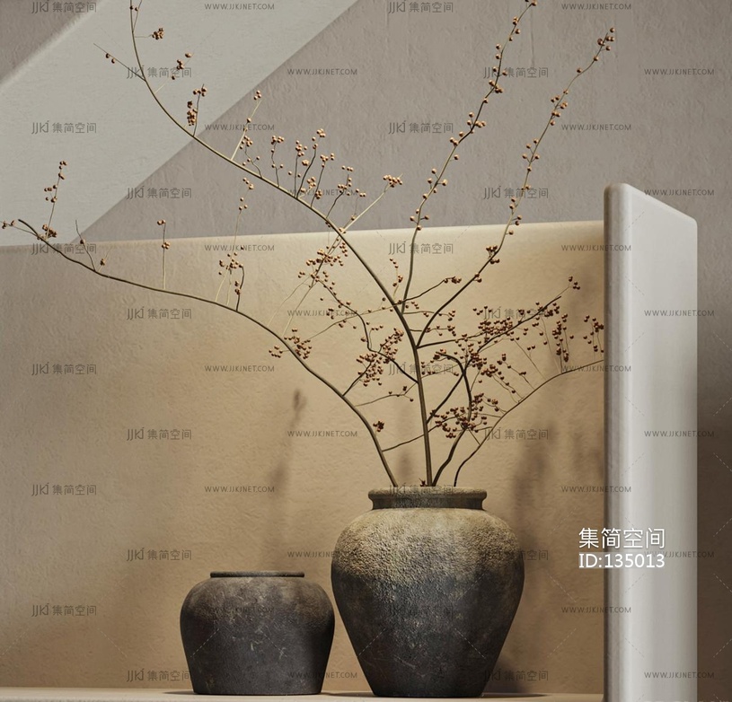 侘寂干枝陶罐花瓶干花 3d模型下载 [模型ID:135013]