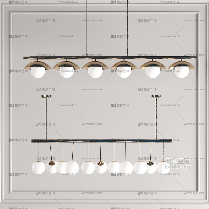 现代长条球形吊灯 3d模型下载 [模型ID:135087]