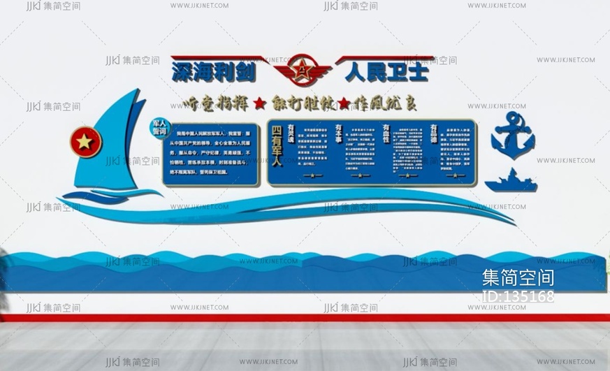 现代军队海军文化墙,宣传墙,标语展板 3d模型下载 [模型ID:135168]