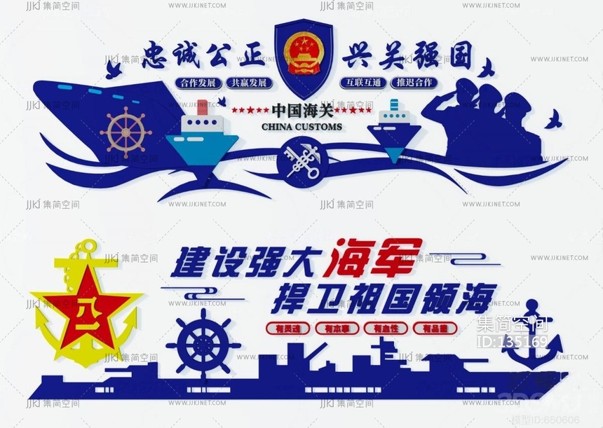 现代海军军队文化墙,宣传墙,标语展板 3d模型下载 [模型ID:135169]