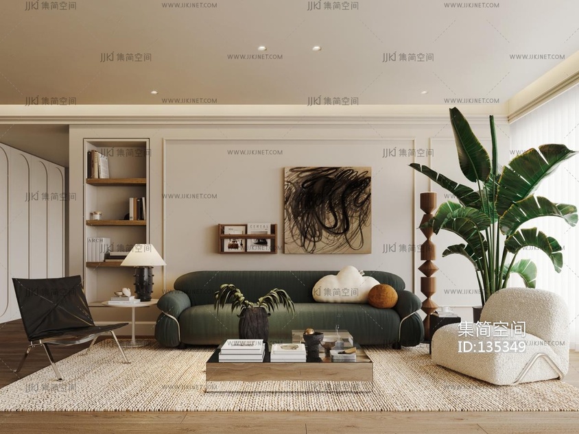法式奶油风客厅3d模型 3d模型下载 [模型ID:135349]