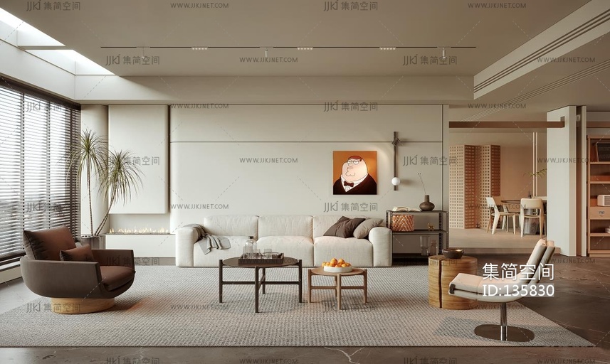 奶油风客厅 3d模型下载 [模型ID:135830]