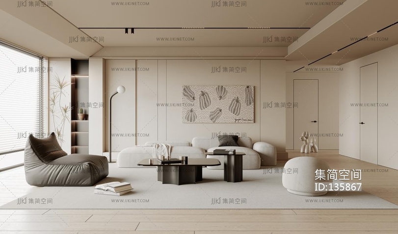 奶油风客厅3d模型 3d模型下载 [模型ID:135867]