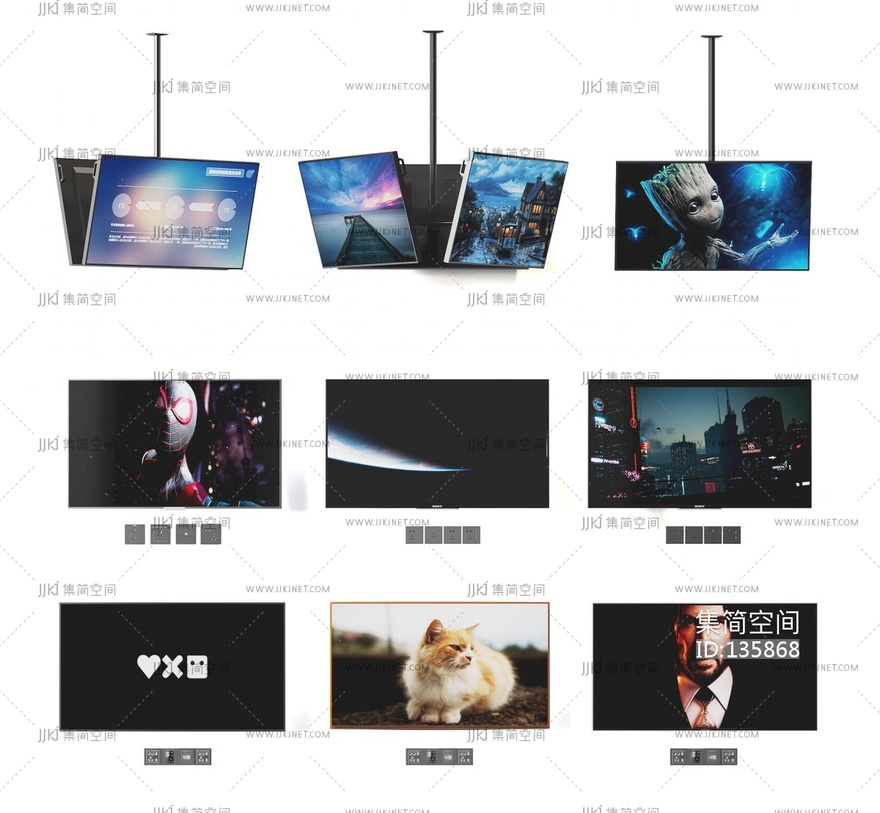 液晶电视 吊装电视3d模型 3d模型下载 [模型ID:135868]