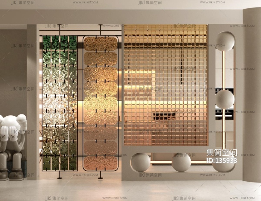 现代屏风隔断波浪造型背景墙3D模型3d模型下载