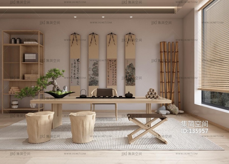 新中式茶室_ 3d模型下载