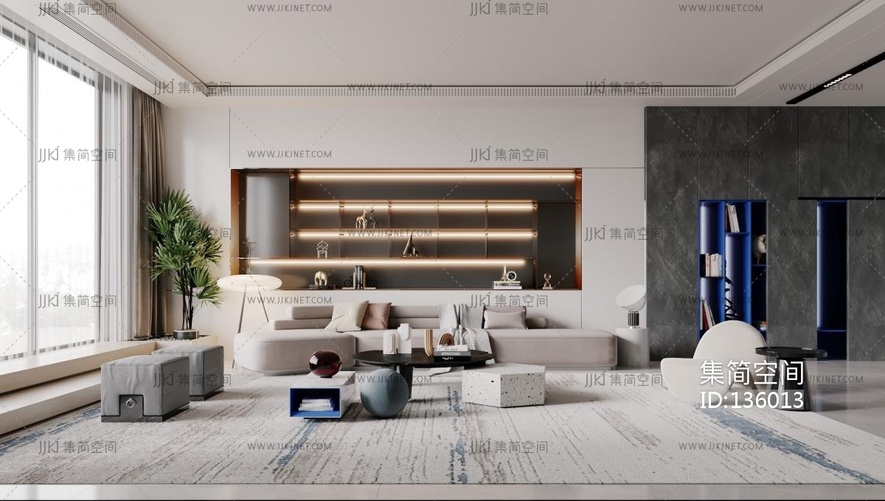 中古风客厅,美式客厅,圆形茶几,装饰画,移动电视,3d模型下载